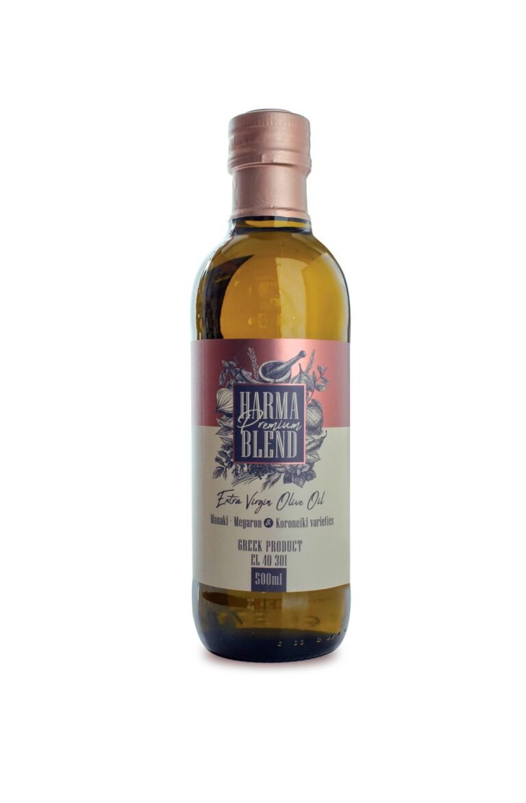 Harma Premium blend EVOO, is produced as a blend of the best Greek olive varieties Manaki, Koroneiki & Megaron.